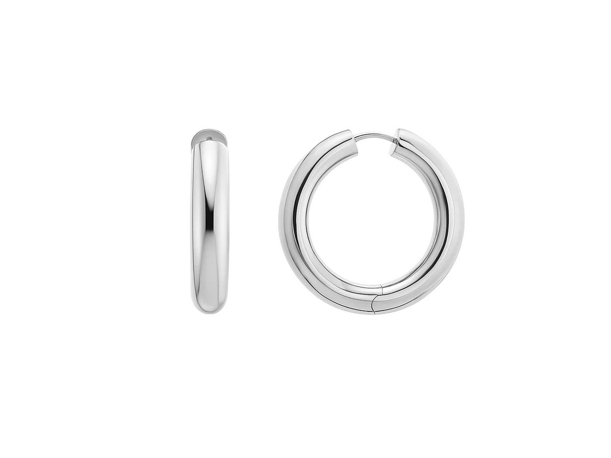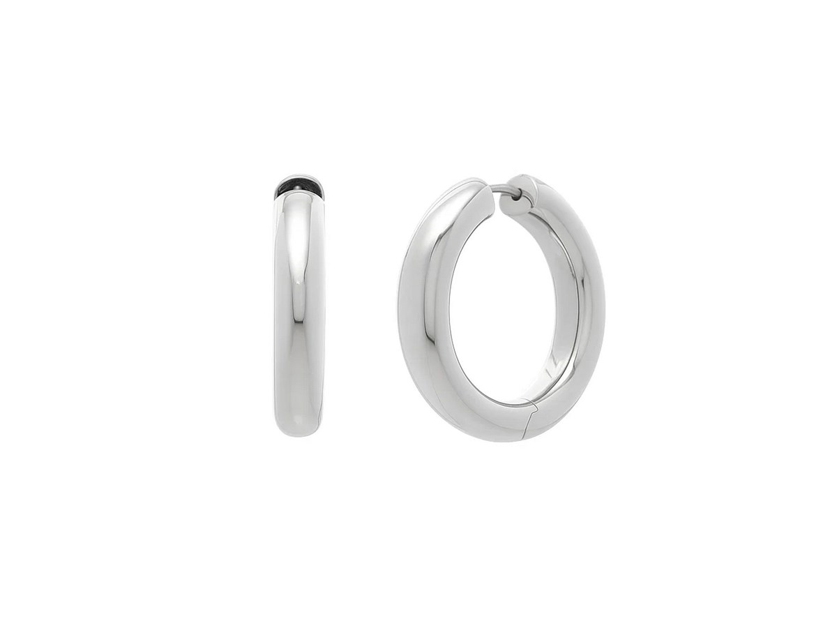Classic sterling silver round hoop earrings featuring a polished finish and secure snap clasp closure. The timeless circular design offers effortless elegance and comfortable wear, making these versatile hoops perfect for everyday style or special occasions.