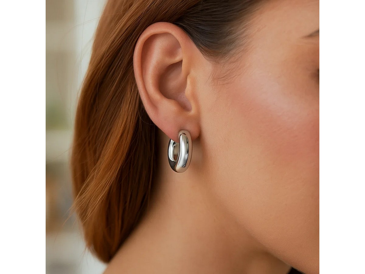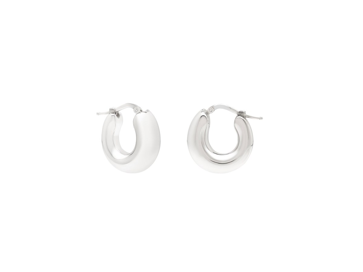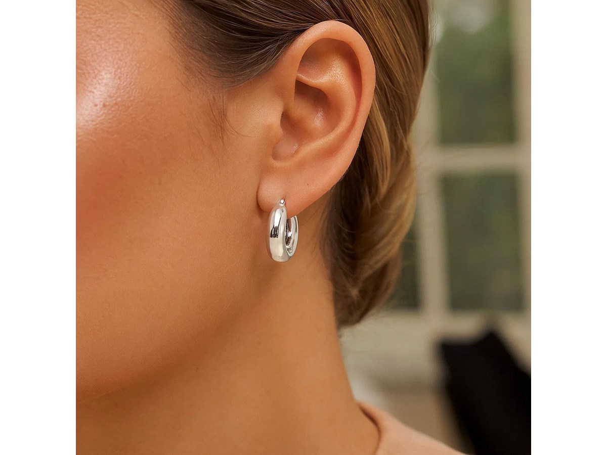 Chic sterling silver small graduated hoop earrings featuring a polished finish and gently tapered design. The subtle graduation adds a touch of dimension and elegance, making these hoops perfect for everyday wear or understated sophistication on any occasion.