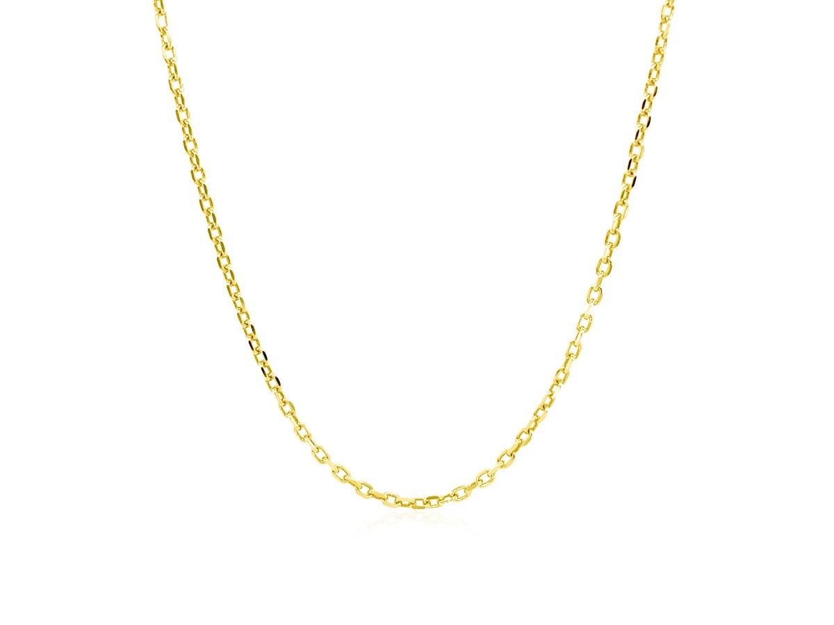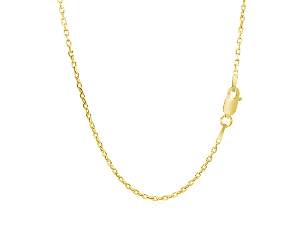Crafted in sterling silver with a rich yellow gold plating, this 1.40 mm diamond-cut cable chain features precision-faceted links that catch the light beautifully, offering a bright, elegant shine and durable design perfect for wearing alone or complementing your favorite pendant.