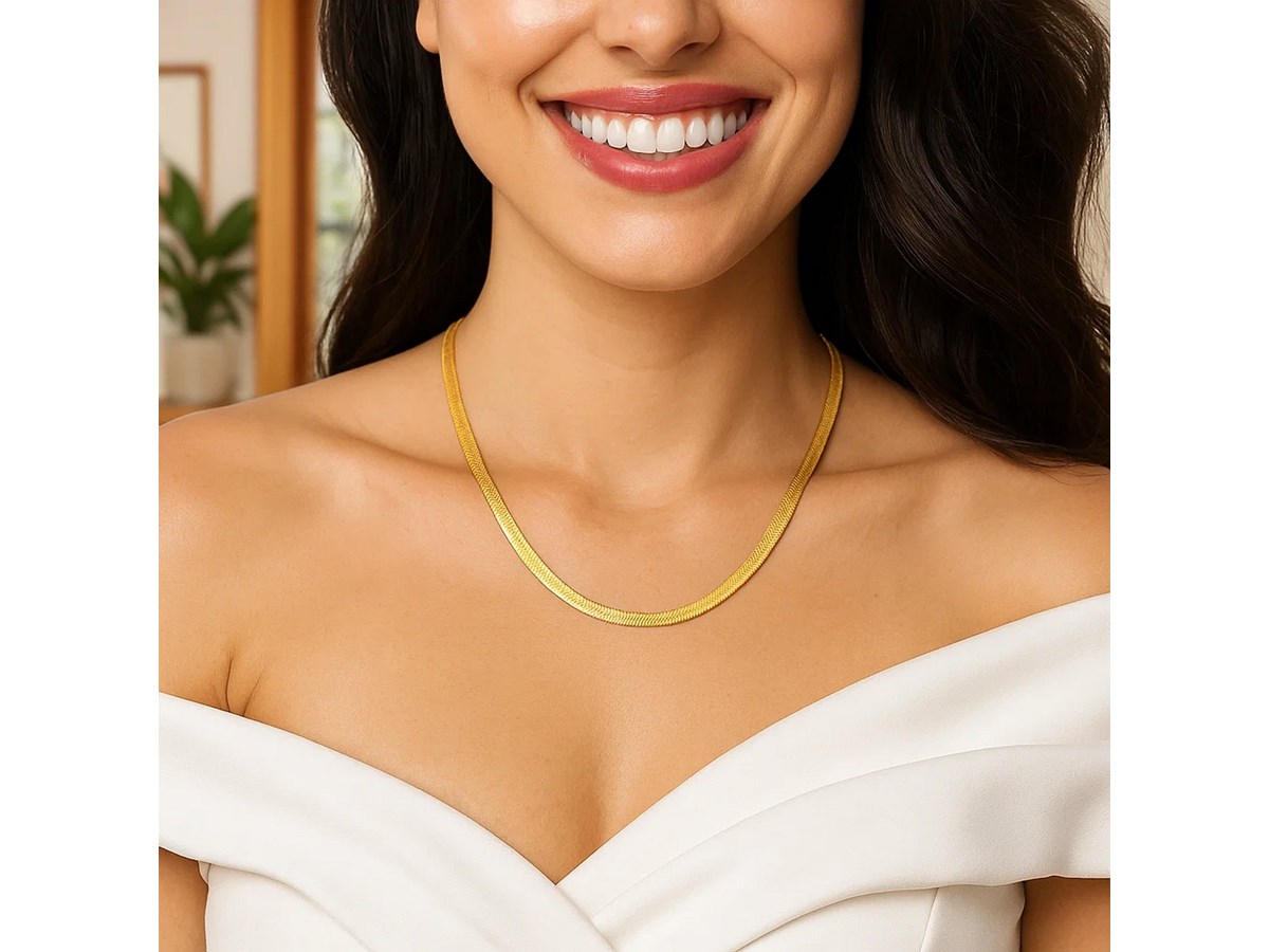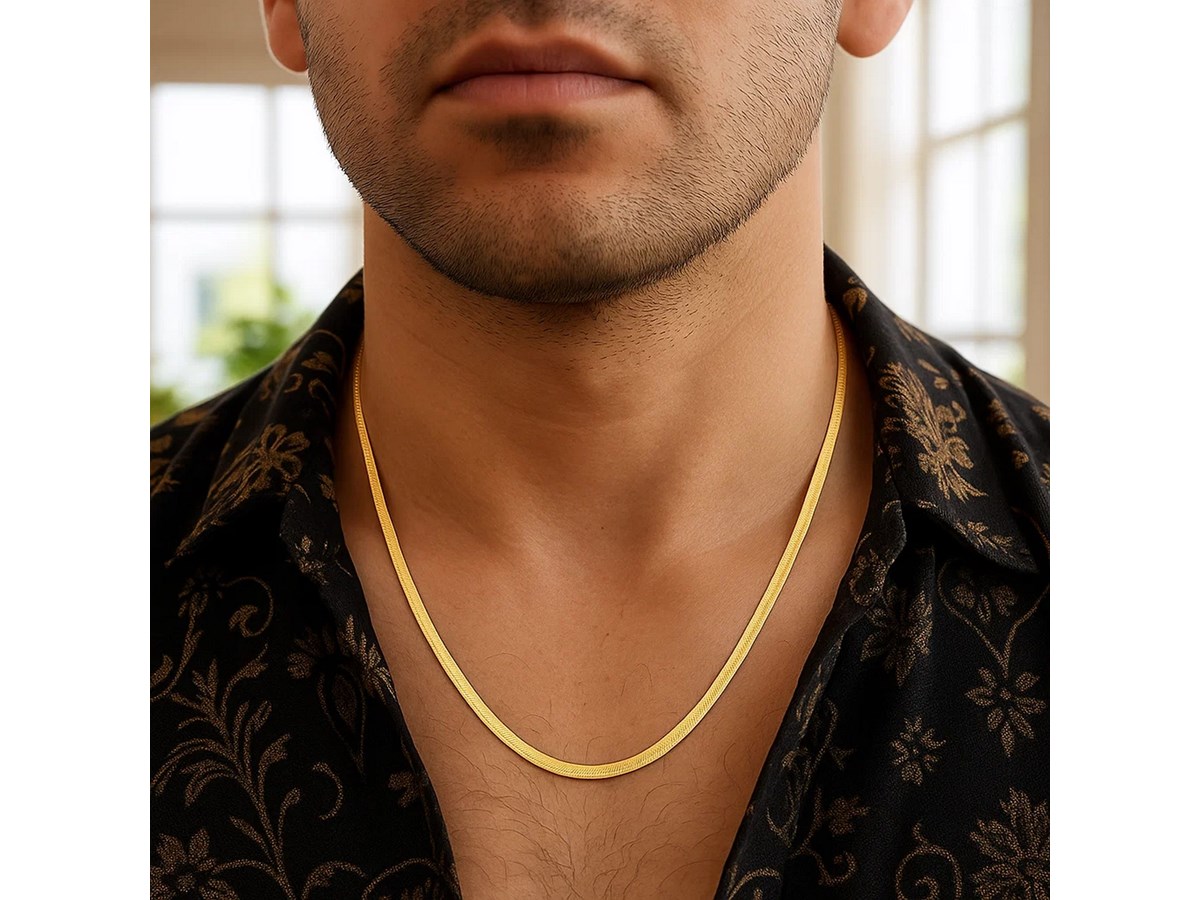 Crafted in sterling silver with a rich yellow gold plating, this 2.70 mm imperial herringbone chain features smooth, tightly woven links that create a fluid, mirror-like shine, offering a luxurious, elegant look perfect for wearing as a standout statement piece or layering with other favorites.