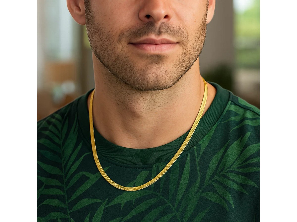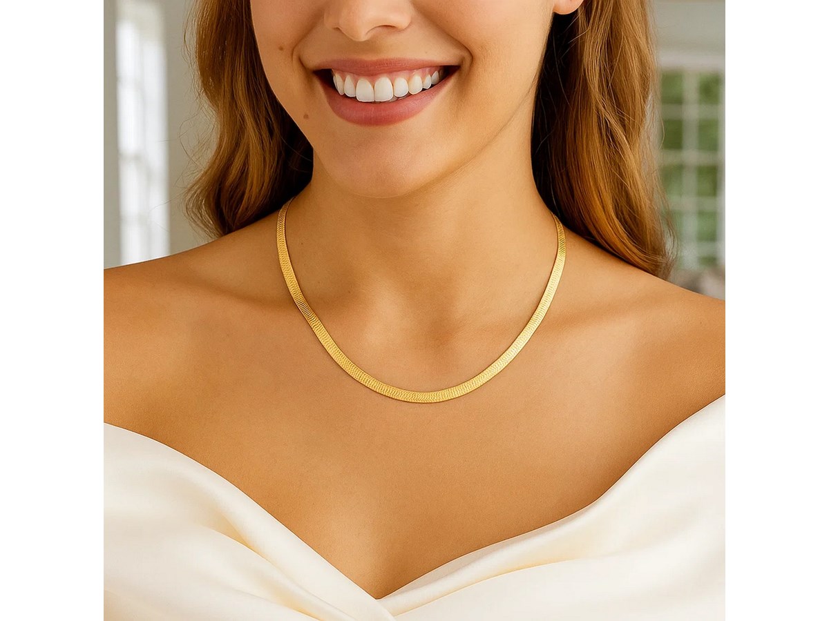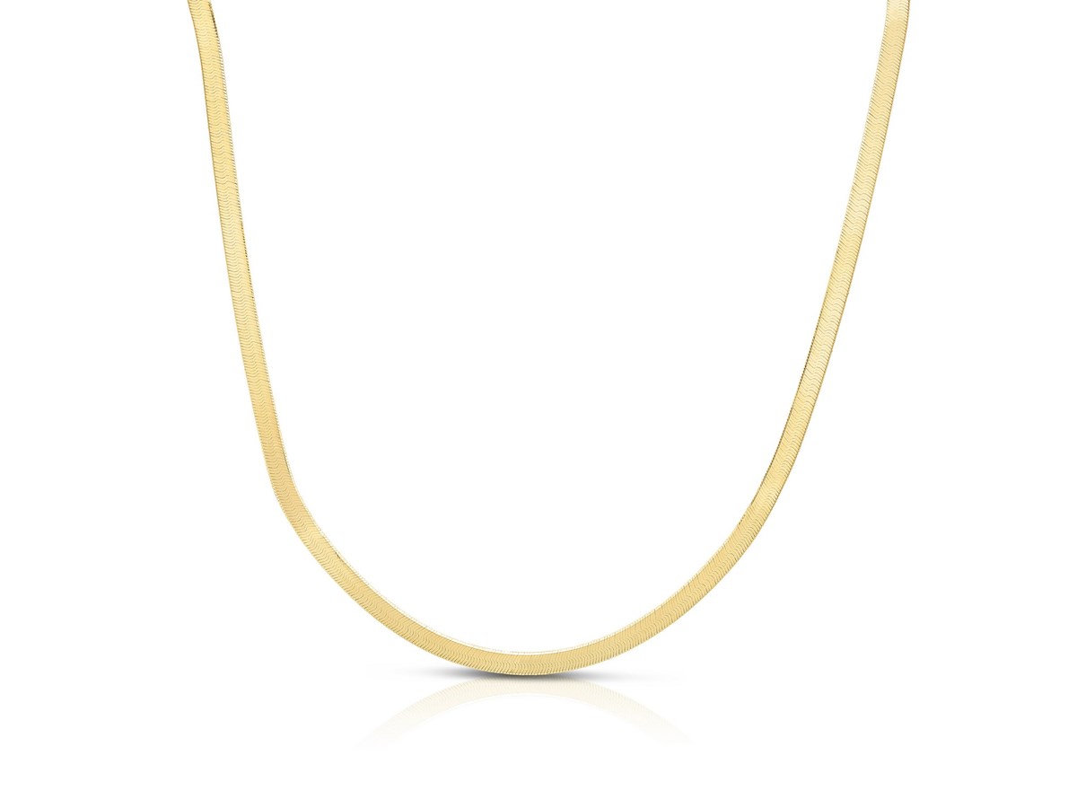 Crafted in sterling silver with a rich yellow gold plating, this 3.40 mm imperial herringbone chain features smooth, tightly woven links that create a fluid, mirror-like shine, offering a luxurious, elegant look perfect for wearing as a standout statement piece or layering with other favorites.
