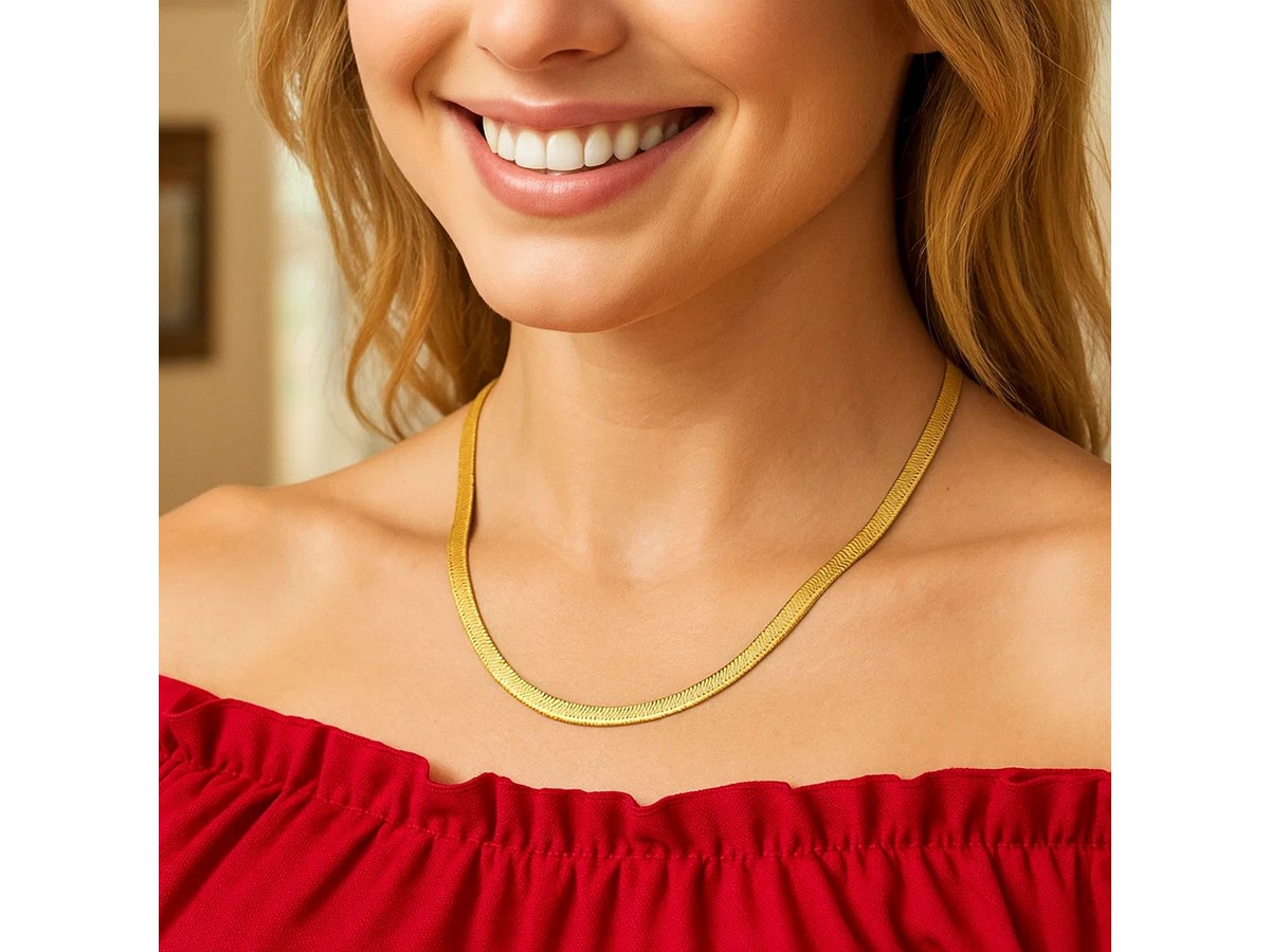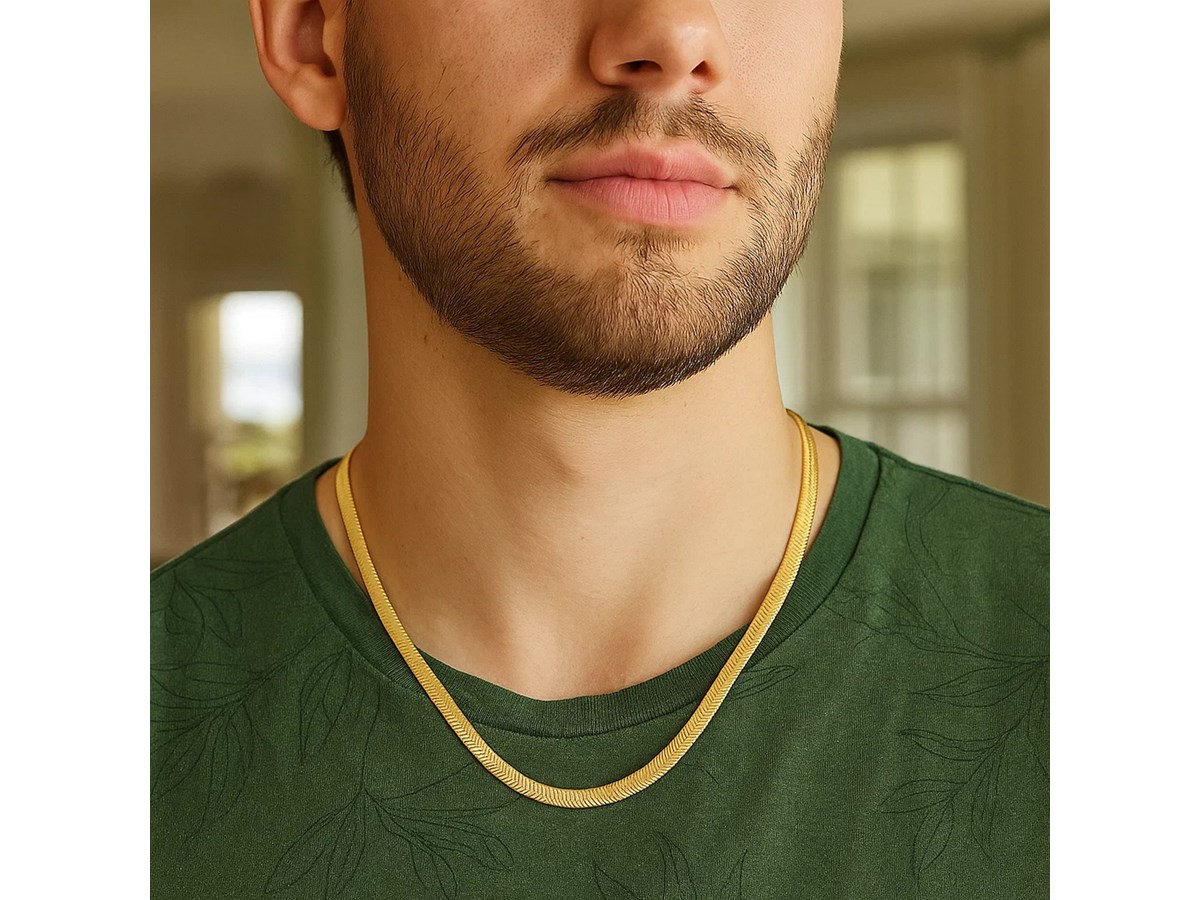 Crafted in sterling silver with a rich yellow gold plating, this 4.20 mm imperial herringbone chain features smooth, tightly woven links that create a fluid, mirror-like shine, offering a luxurious, elegant look perfect for wearing as a standout statement piece or layering with other favorites.