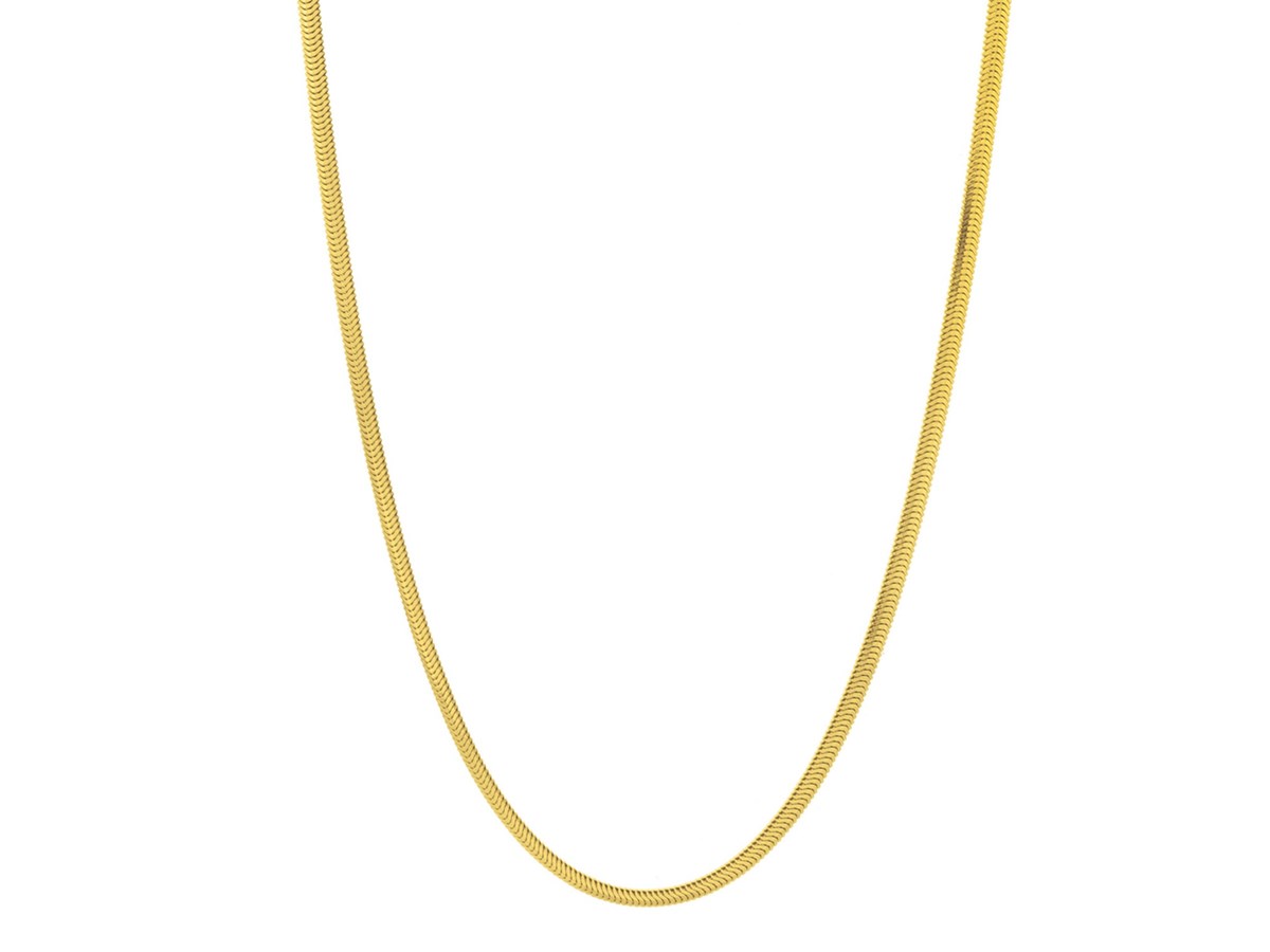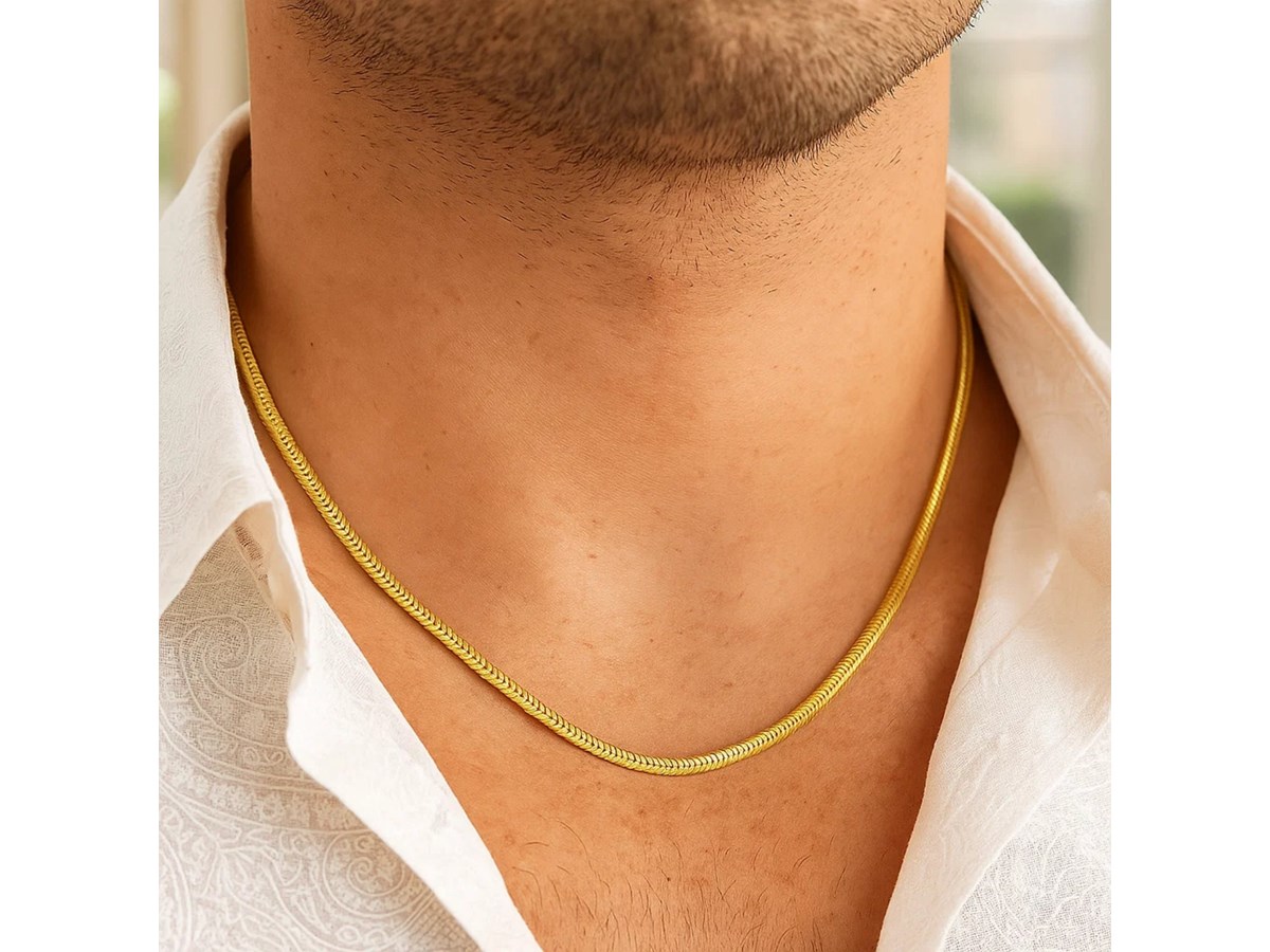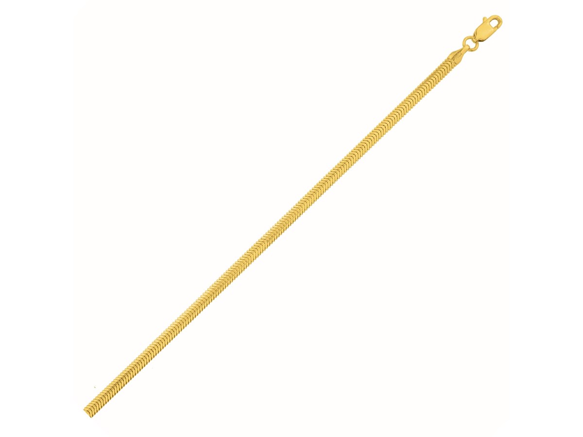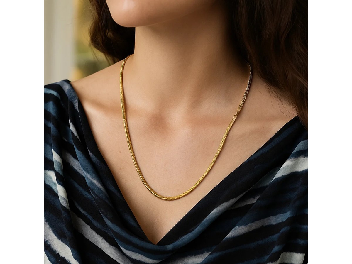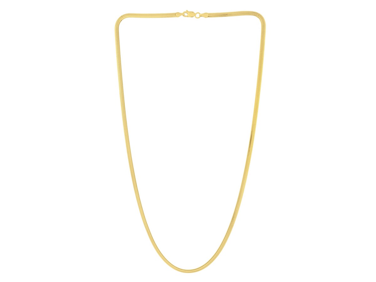 Crafted in sterling silver with a warm yellow gold plating, this 3.30 mm oval snake chain features smooth, elongated links that create a sleek, flexible drape and a polished, luminous shine, making it a versatile piece perfect for wearing alone or pairing with your favorite pendant.