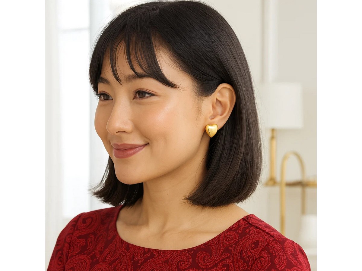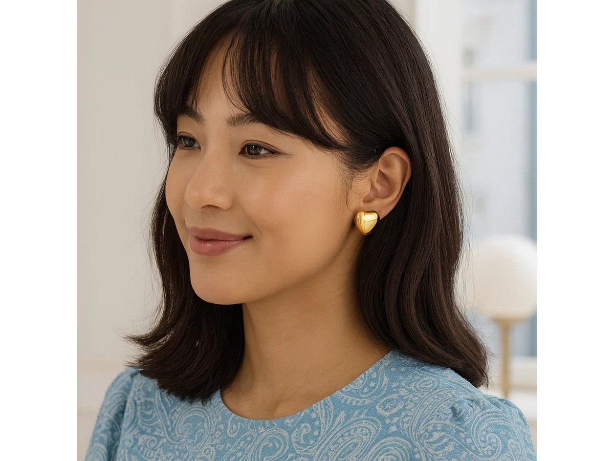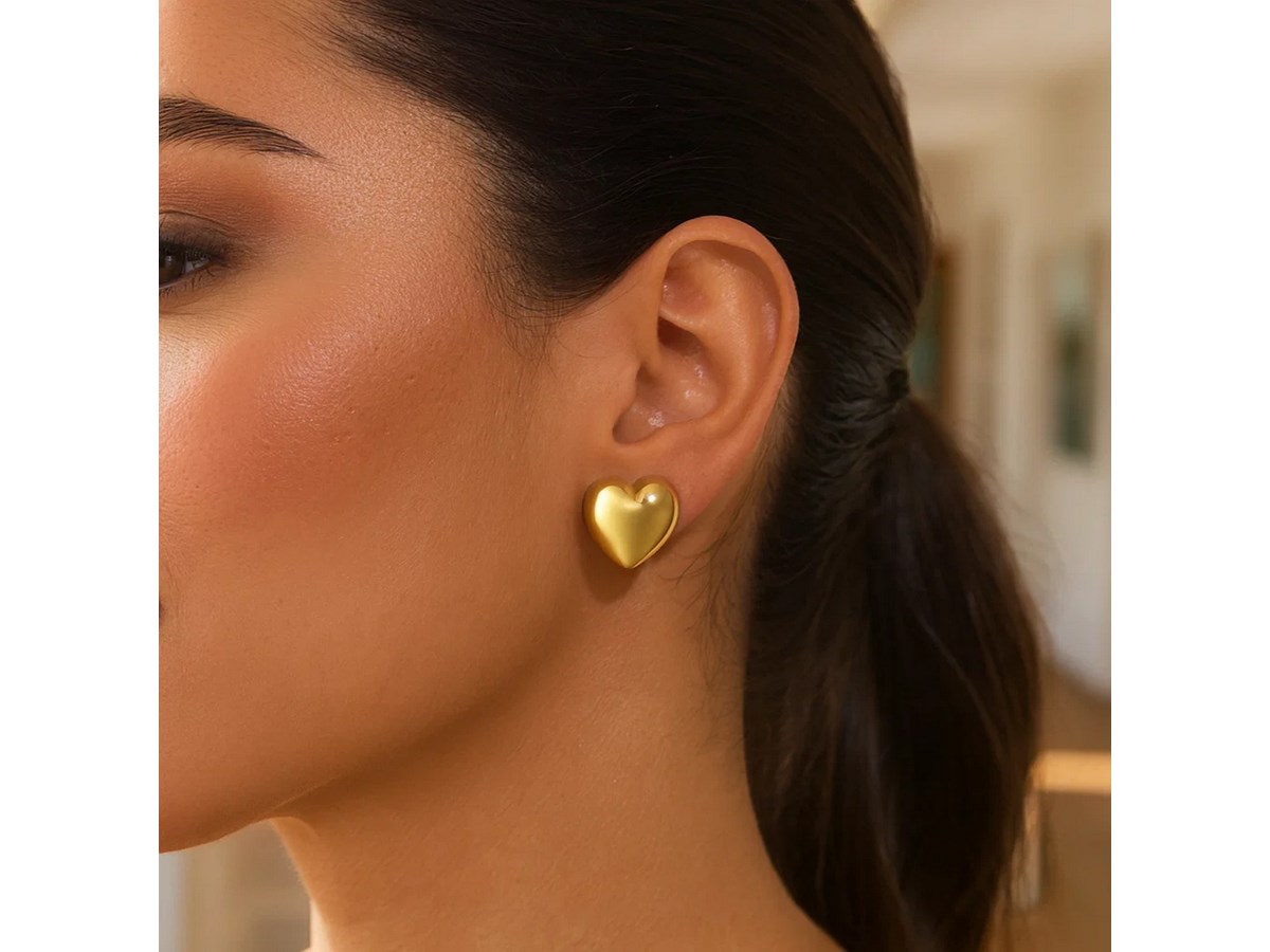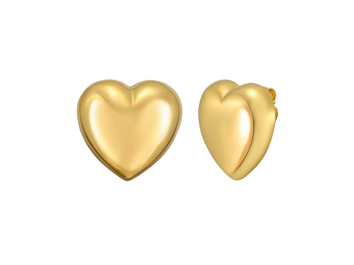 Stunning sterling silver yellow gold plated puffed large heart stud earrings featuring a smooth, high-polish finish with a rich golden glow. The bold puffed heart design adds warmth and shine, creating a timeless statement of elegance and romance.