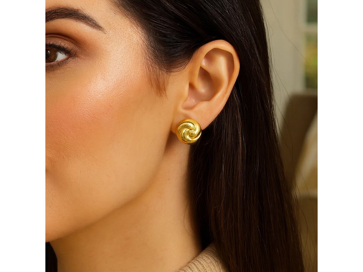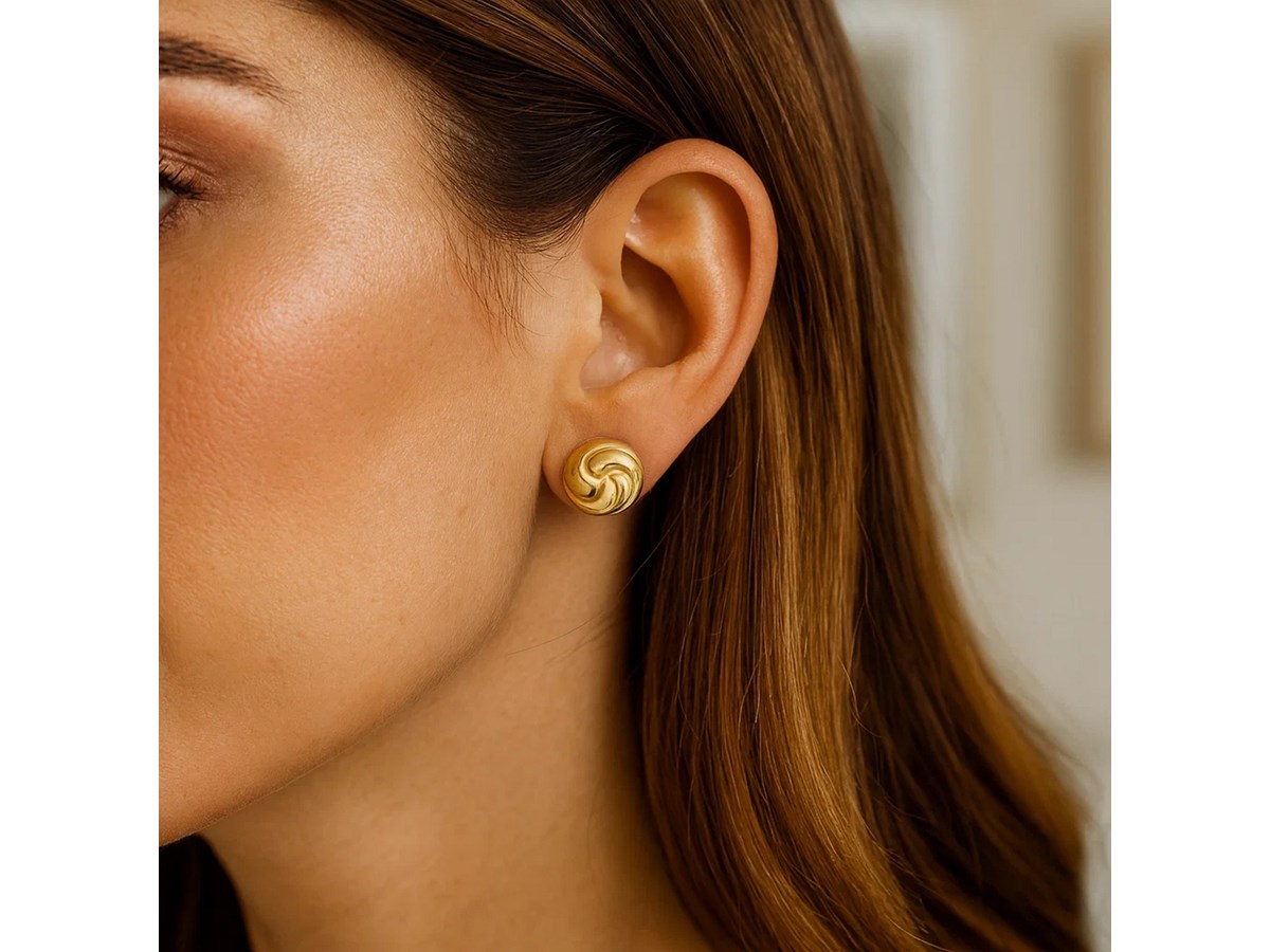 Chic sterling silver yellow gold plated puffed swirly knot stud earrings featuring an elegant intertwined design with a radiant polished finish. The puffed swirls add texture and depth, while the golden hue brings warmth and timeless sophistication.