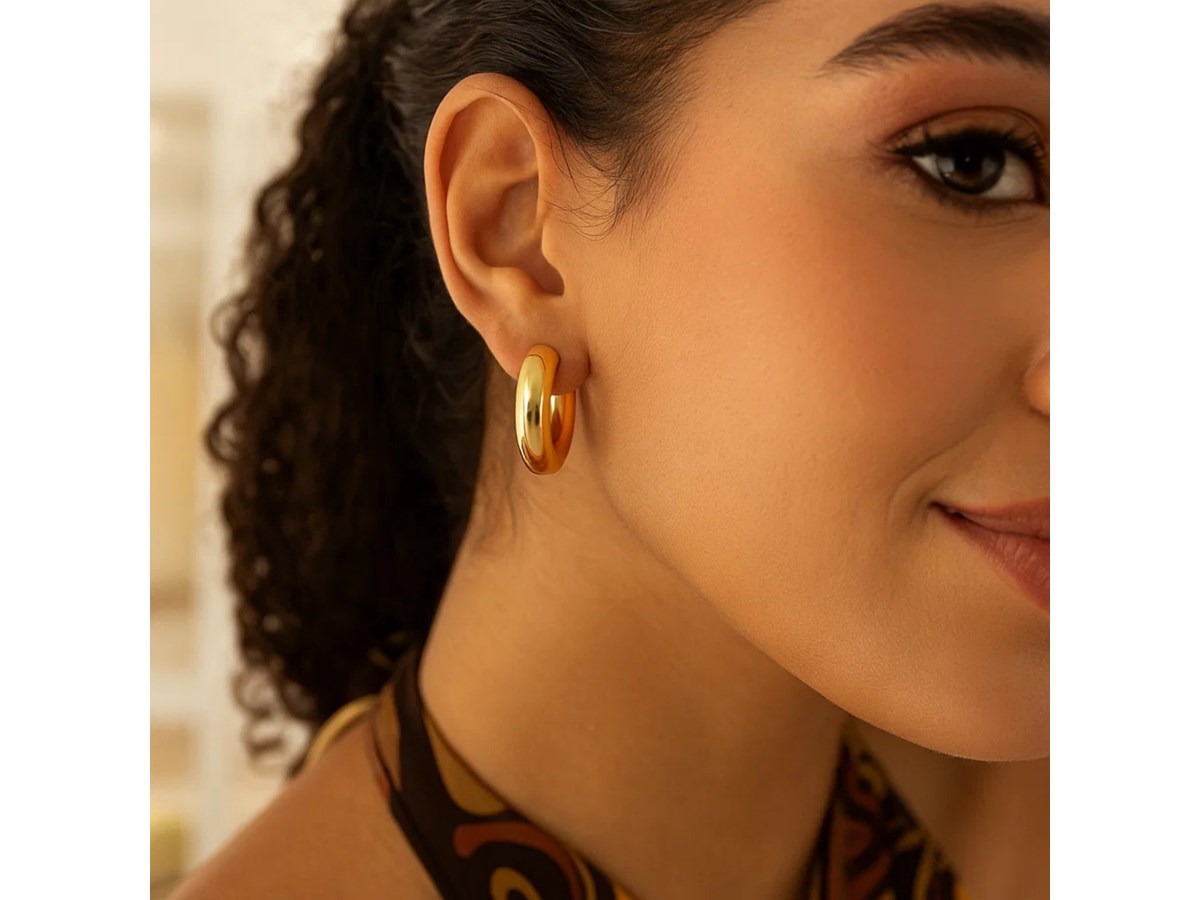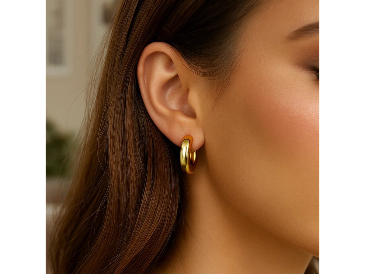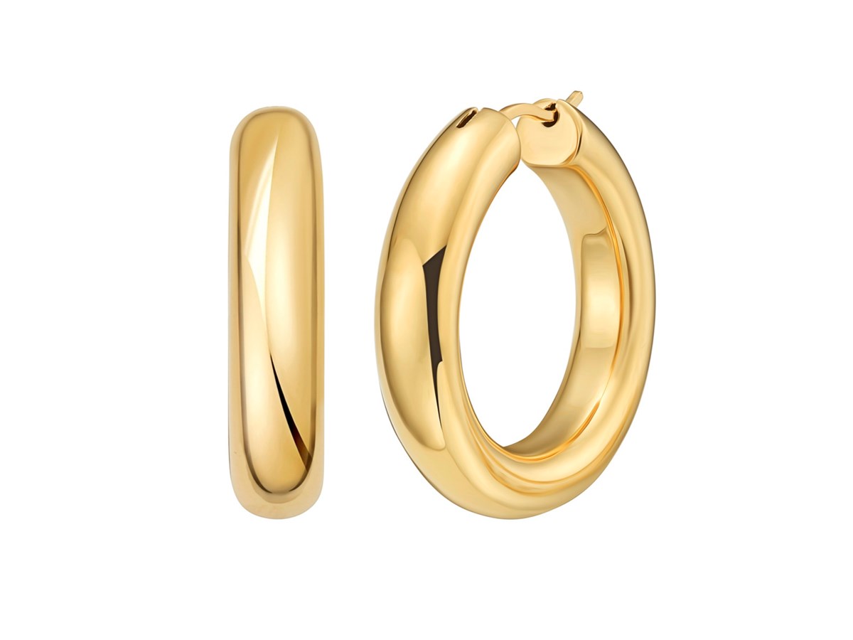 Elegant sterling silver yellow gold plated round hoop earrings featuring a polished finish and classic design. Lightweight and versatile, these radiant hoops add warmth and sophistication, perfect for elevating both everyday and special occasion looks.