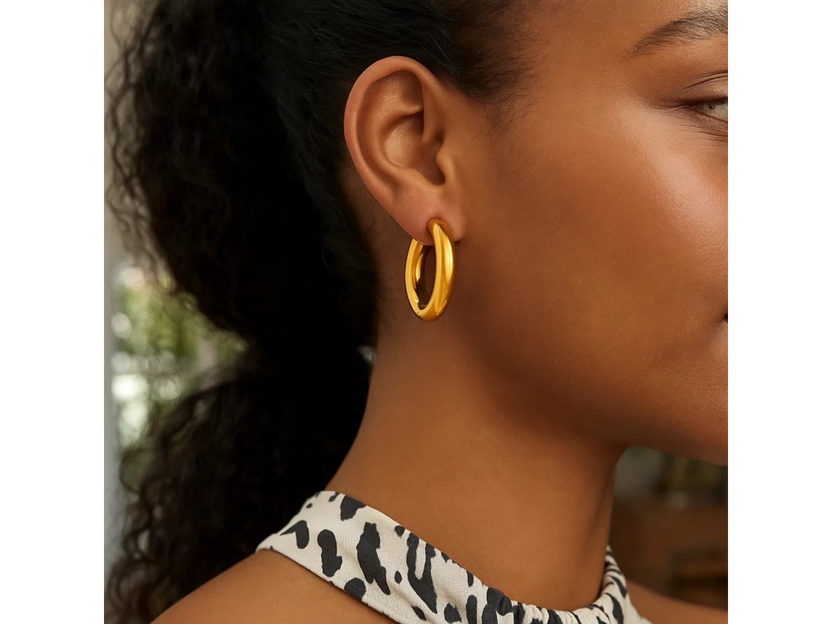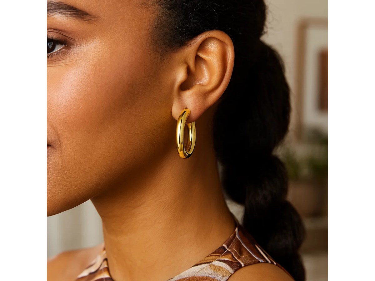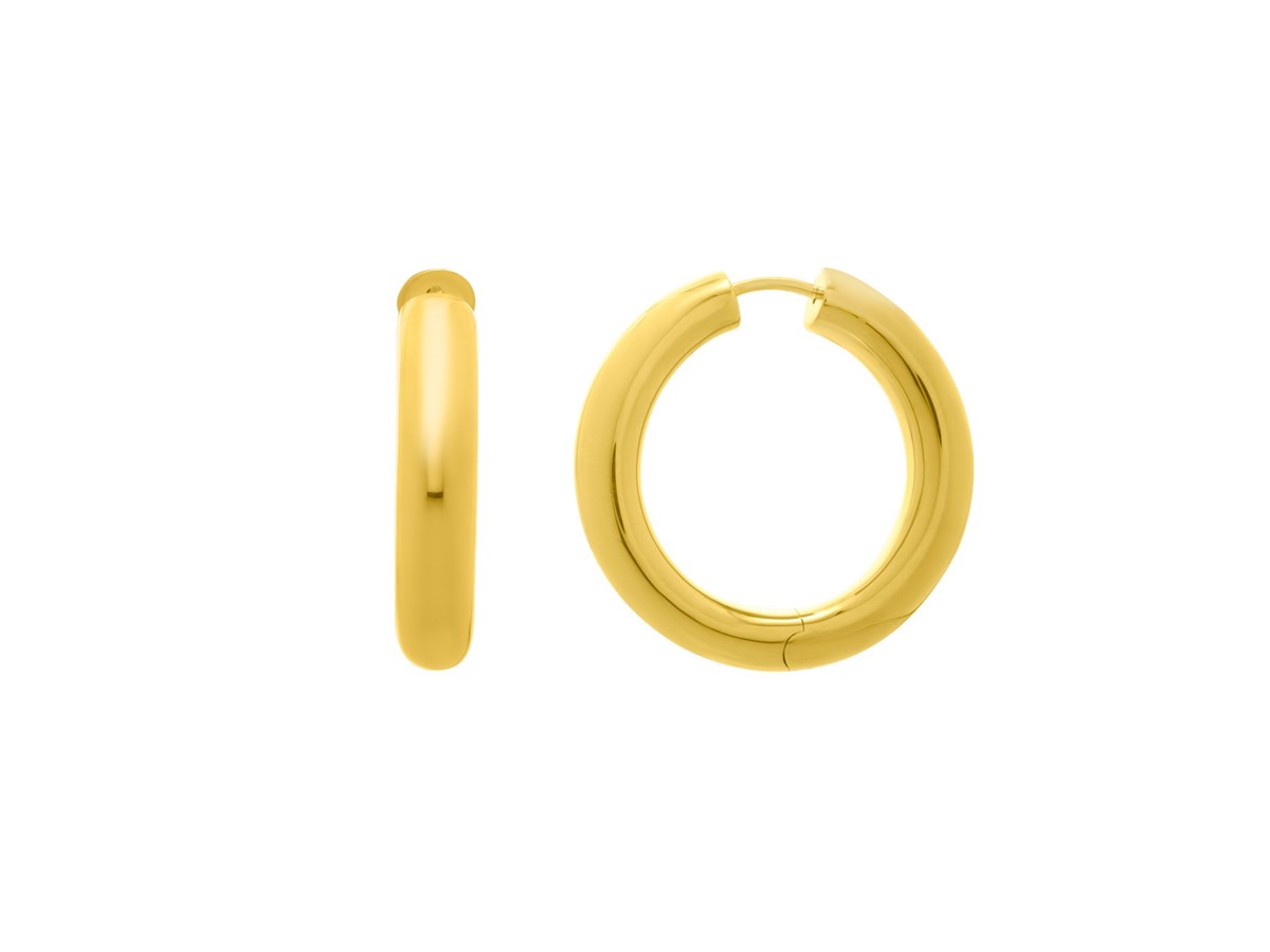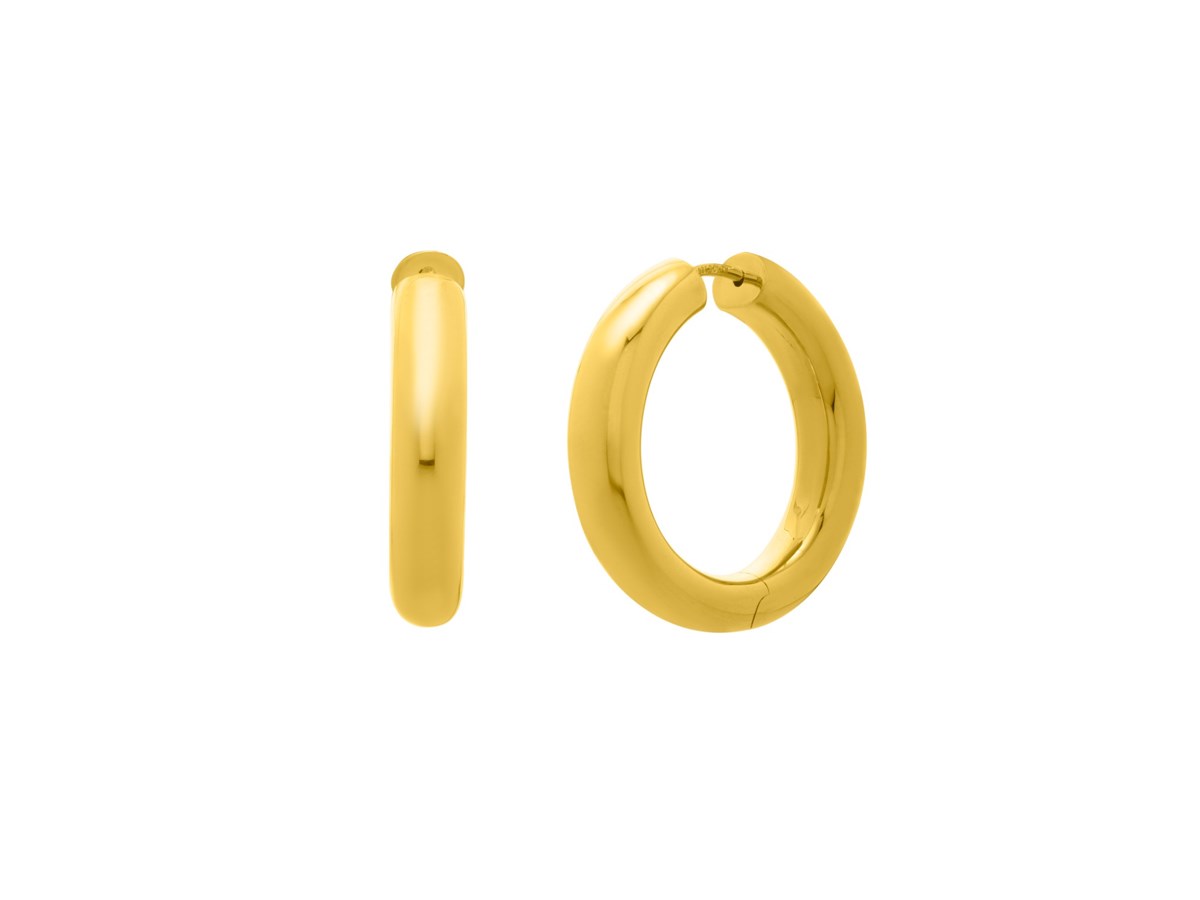 Elegant sterling silver yellow gold plated round hoop earrings featuring a polished finish and classic circular design. Lightweight and versatile, these radiant hoops bring warmth and sophistication to any look, perfect for everyday wear or special occasions.