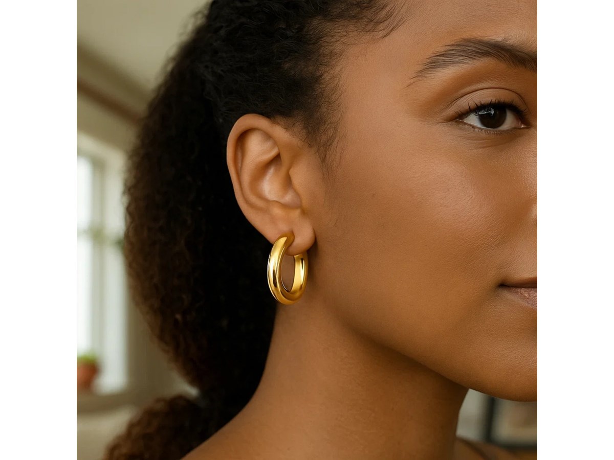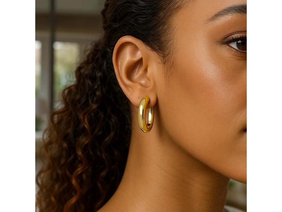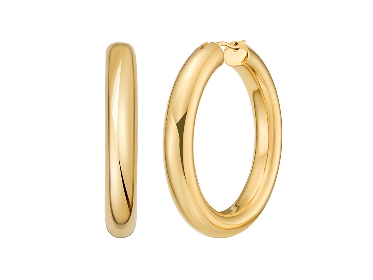 Elegant sterling silver yellow gold plated round hoop earrings featuring a polished finish and classic design. Lightweight and versatile, these radiant hoops add warmth and sophistication, perfect for elevating both everyday and special occasion looks.