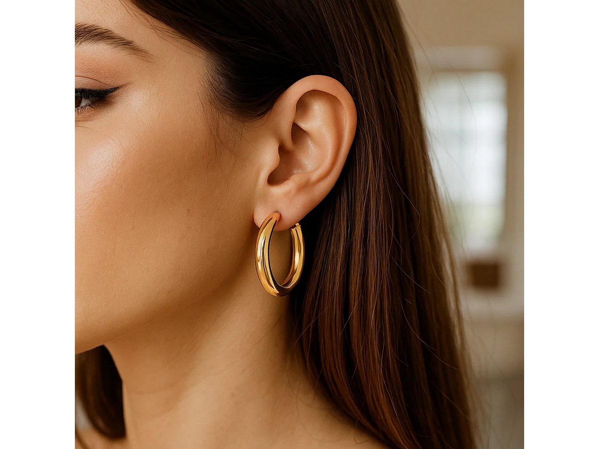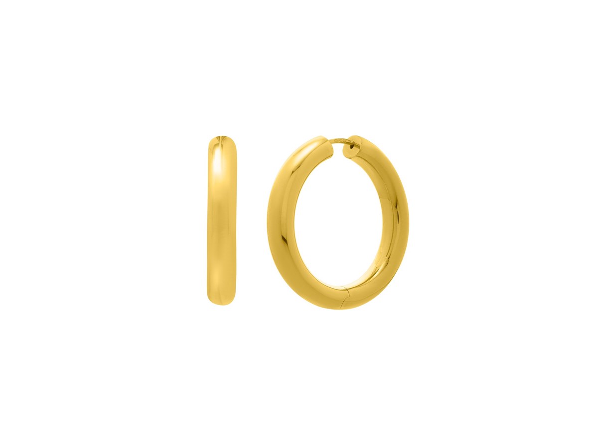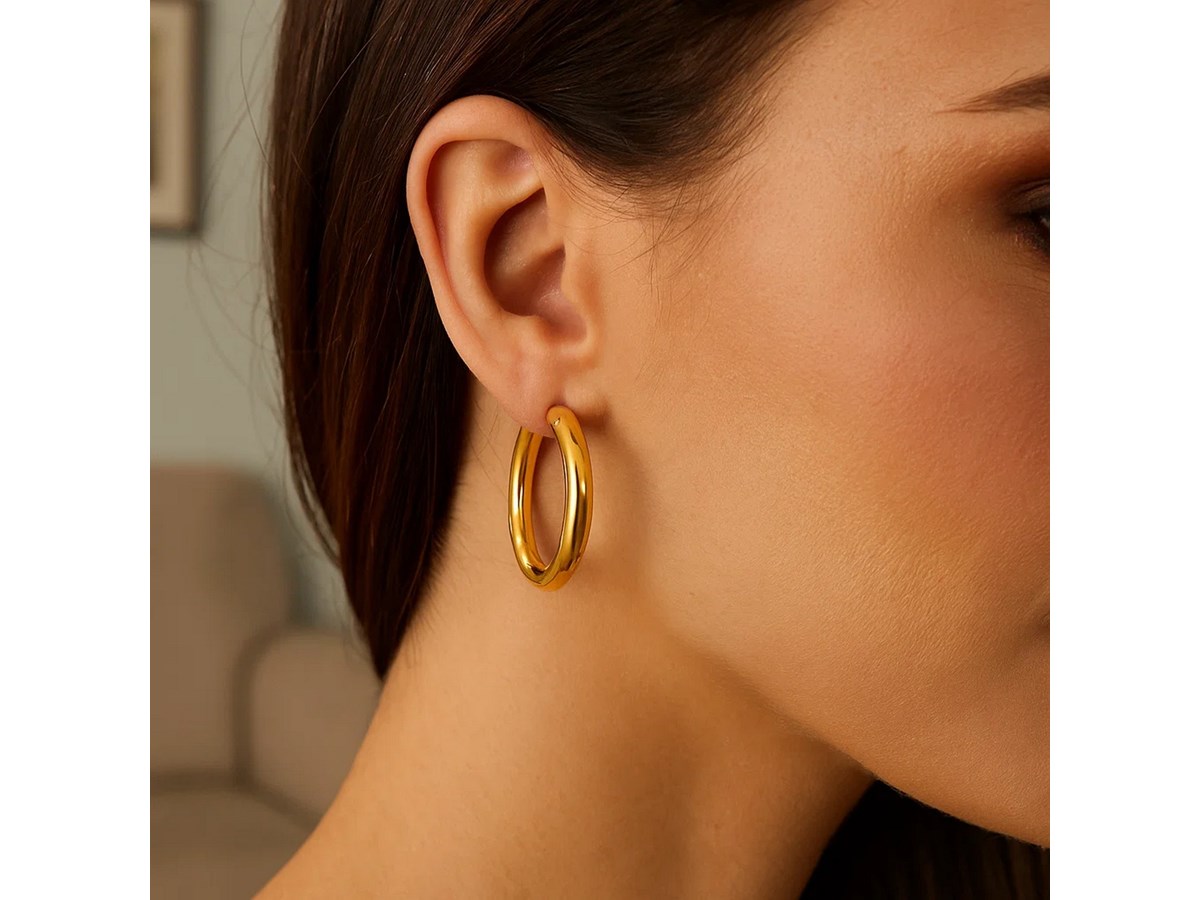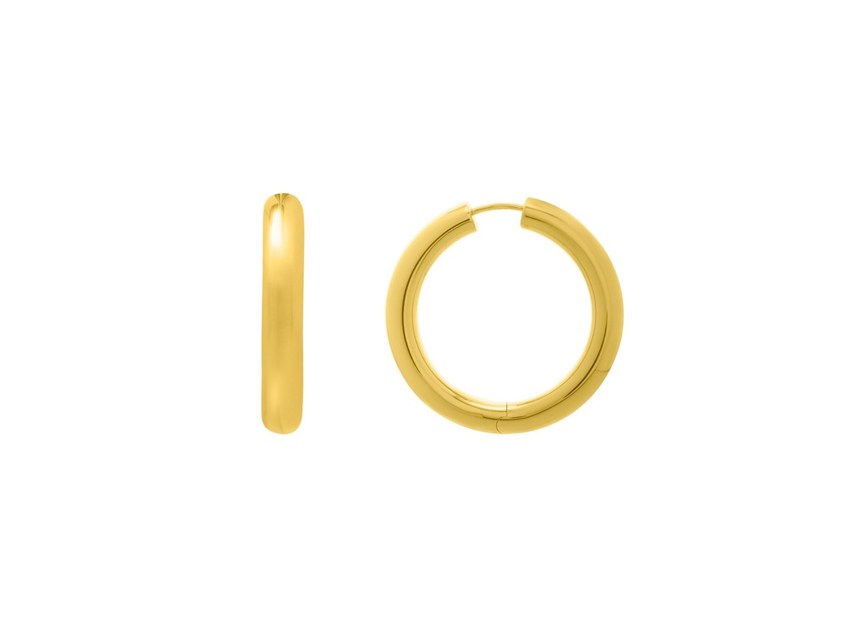 Elegant sterling silver yellow gold plated round hoop earrings featuring a polished finish and classic circular design. Lightweight and versatile, these radiant hoops bring warmth and sophistication to any look, perfect for everyday wear or special occasions.