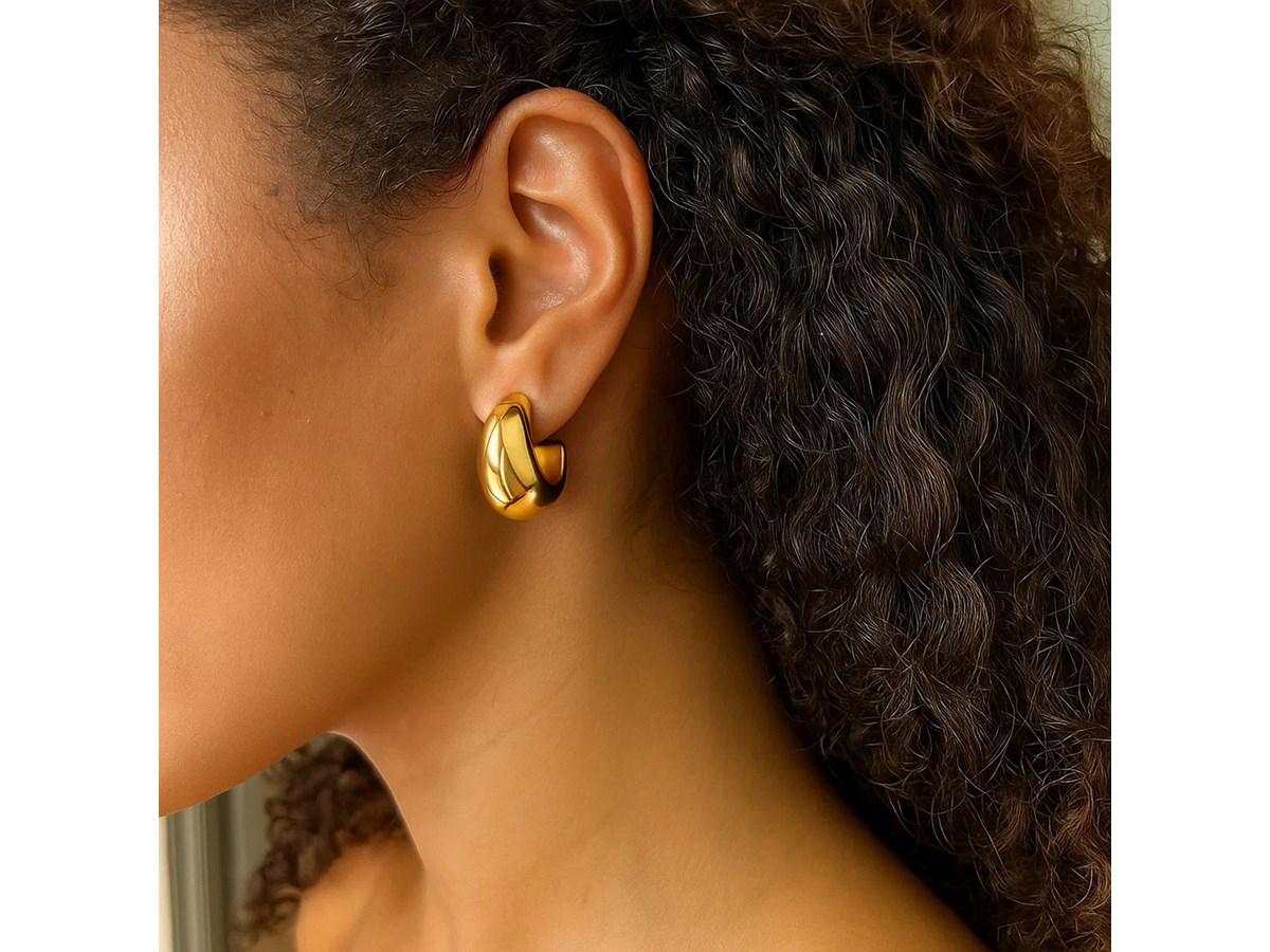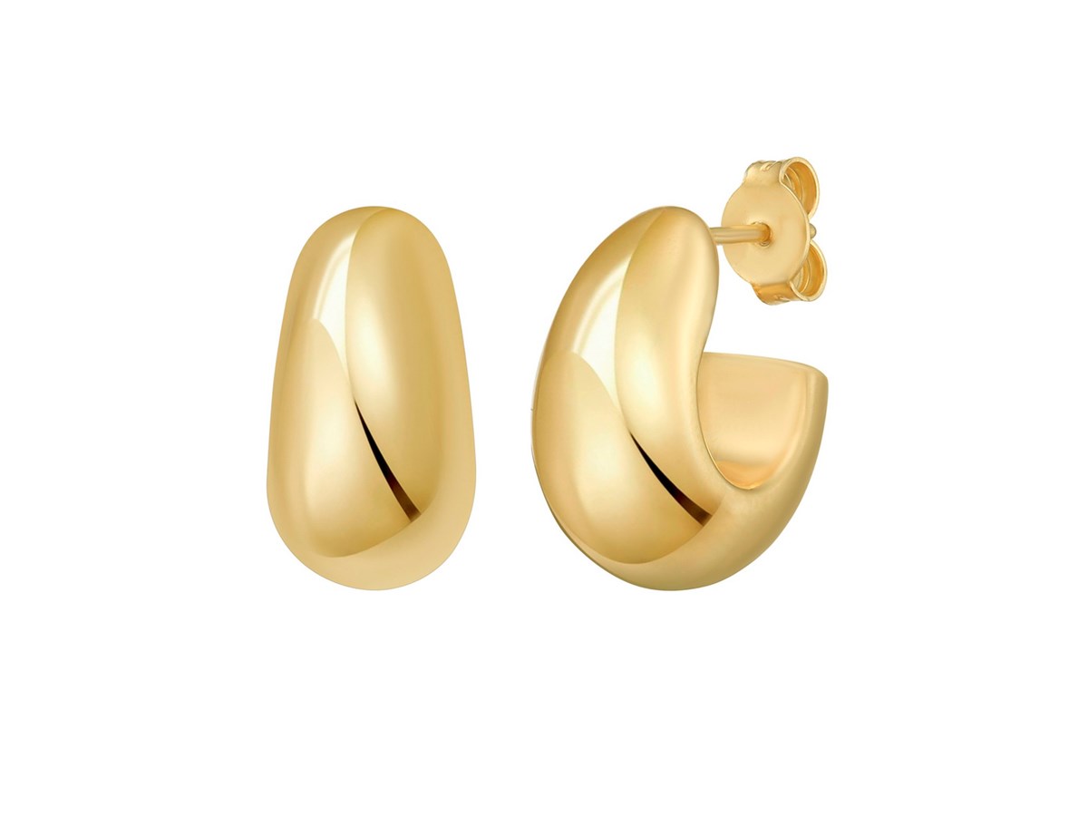 Sterling Silver Yellow Gold Plated Twisted Puff C Hoop Earrings