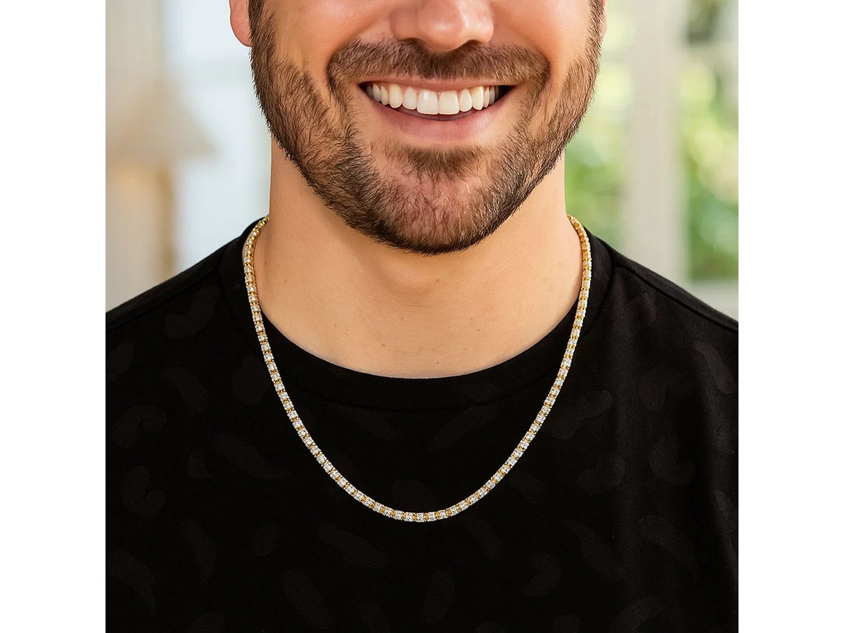 Crafted in sterling silver with a rich gold plating, this 3.80 mm ice barrel chain features bold, faceted barrel-shaped links that deliver striking luminosity and modern texture, making it a standout piece perfect for wearing on its own or pairing with a statement pendant.