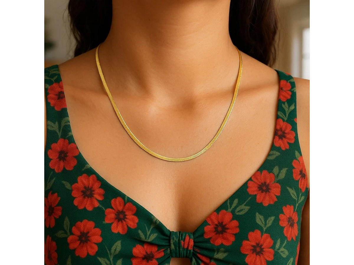 Super flex herringbone chain crafted in 14k yellow gold measuring 2.80 millimeters in width. Available in lengths 16 inches, 18 inches and 20 inches.