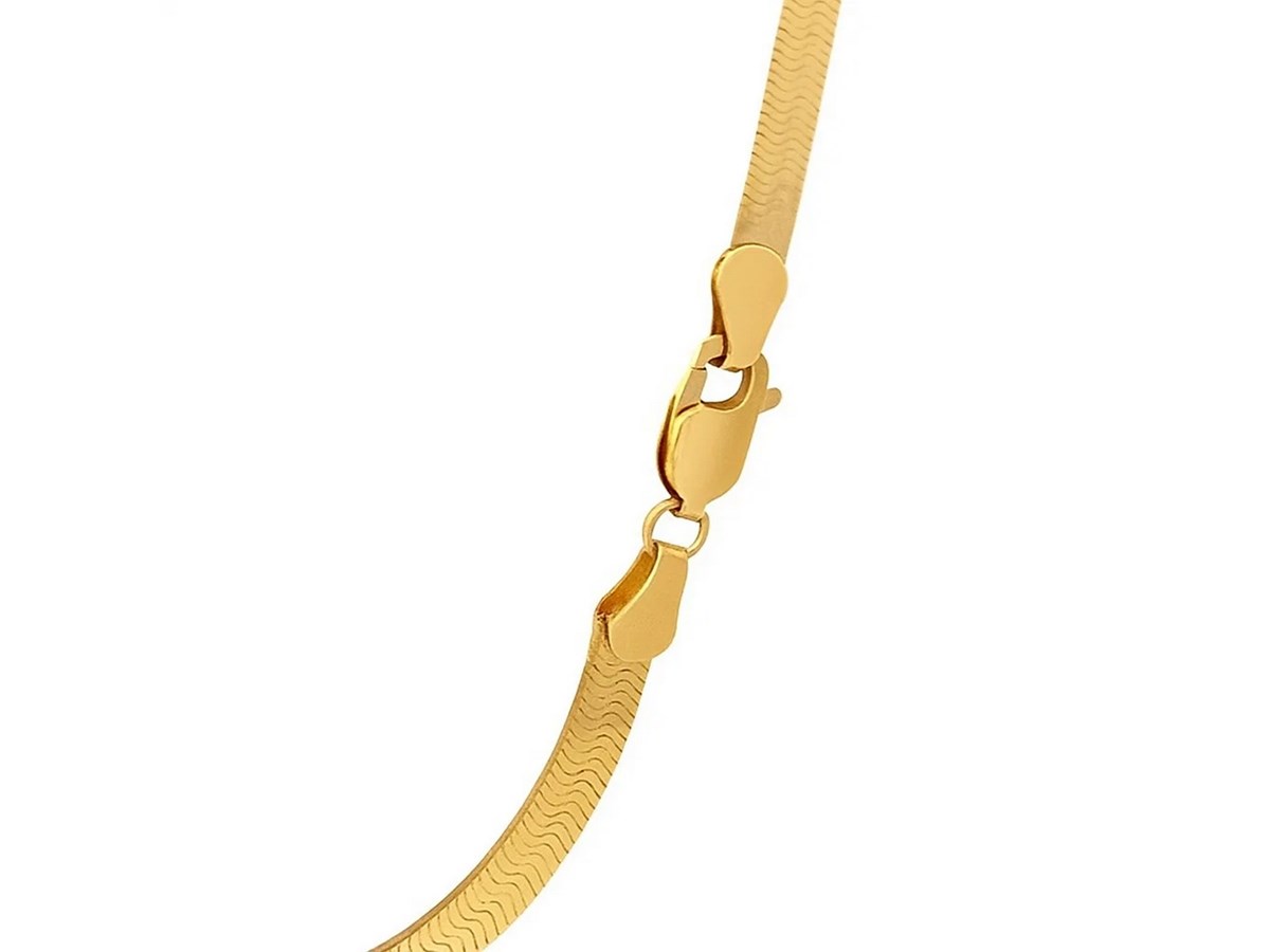 Super flex herringbone chain crafted in 14k yellow gold measuring 3.80 millimeters in width. Available in lengths 16 inches, 18 inches, 20 inches and 24 inches.