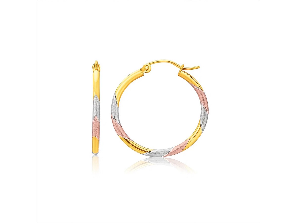 Textured Hoop Earrings in 14k Tri-Color Gold (2x22mm)