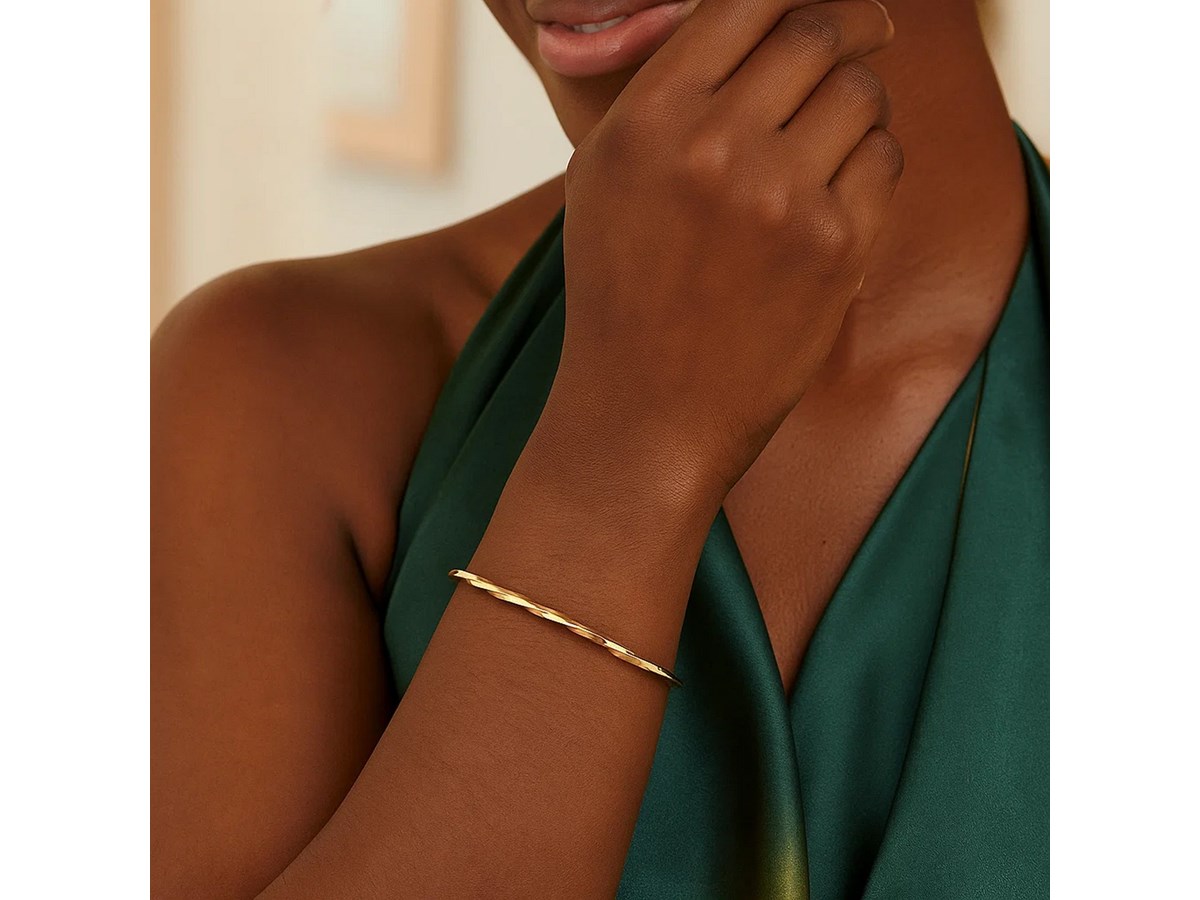 Twisted Style Thin Bangle in 14k Yellow Gold (2.50 mm)