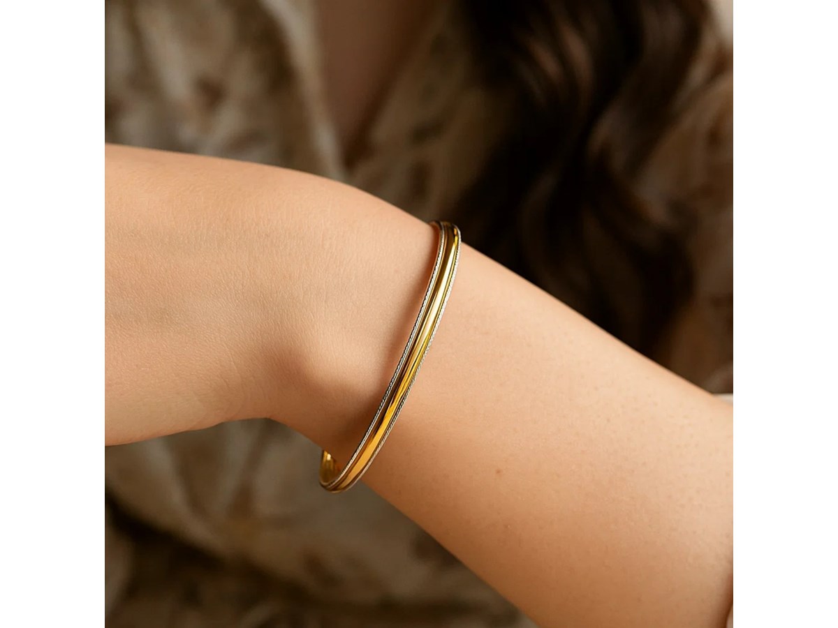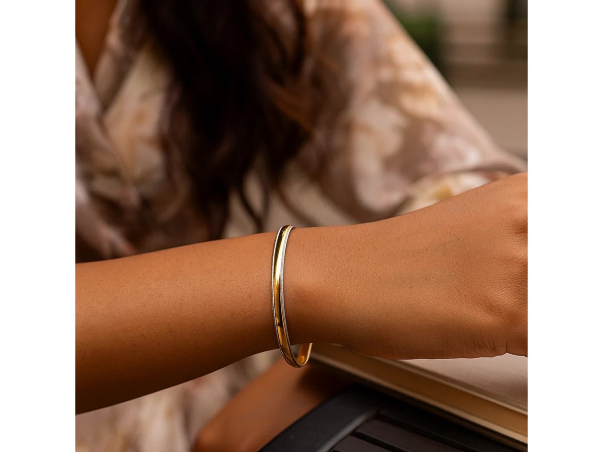 Two Tone Minimalist Bangle in 14K Yellow Gold (4.10 mm)