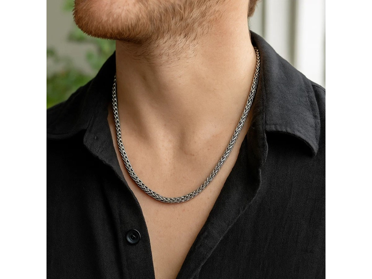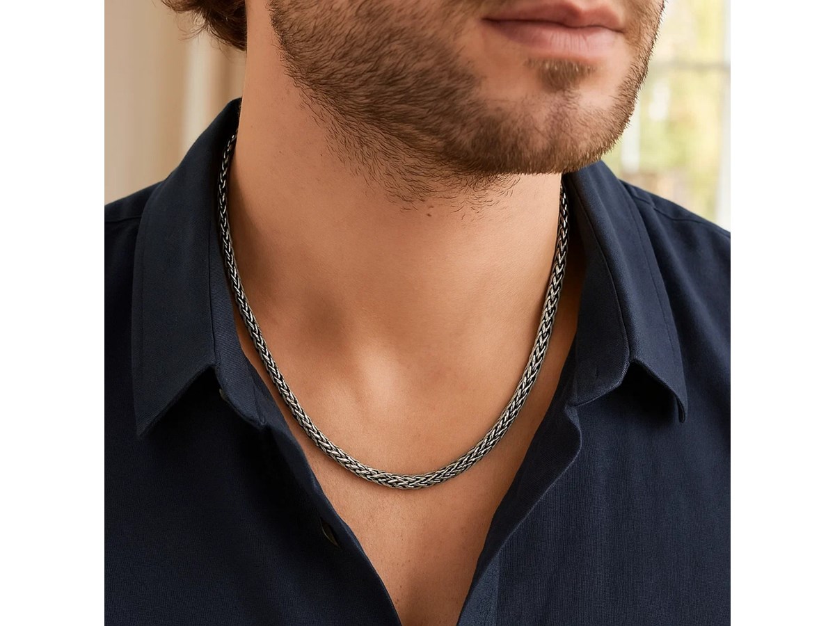 Wheat Chain Men's Necklace in Oxidized Sterling Silver