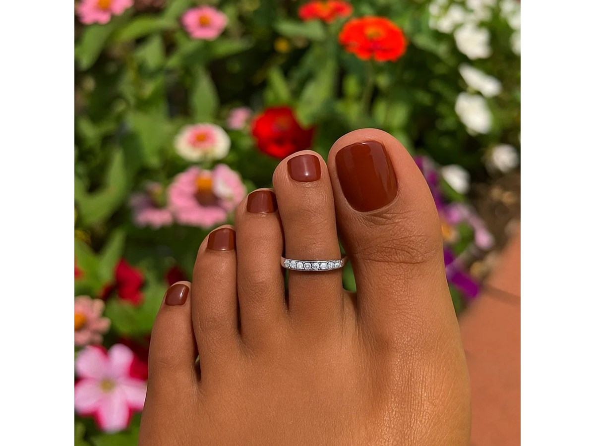White Cubic Zirconia Embellished Toe Ring in Rhodium Plated Sterling Silver