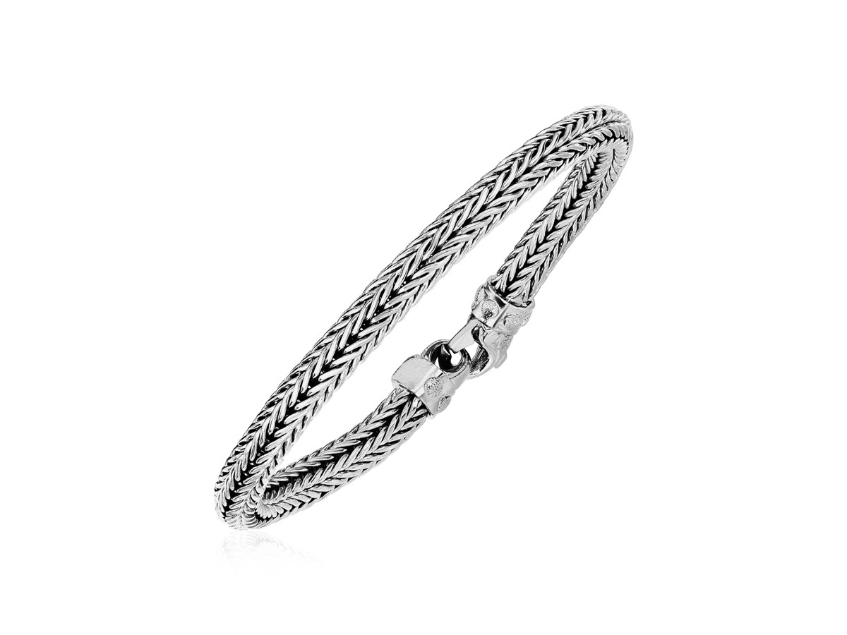 Modern simplicity meets texture and contrast in this elegant sterling silver woven rope bracelet. Bracelet is 8 1/2 inches long and closes with a lobster clasp.